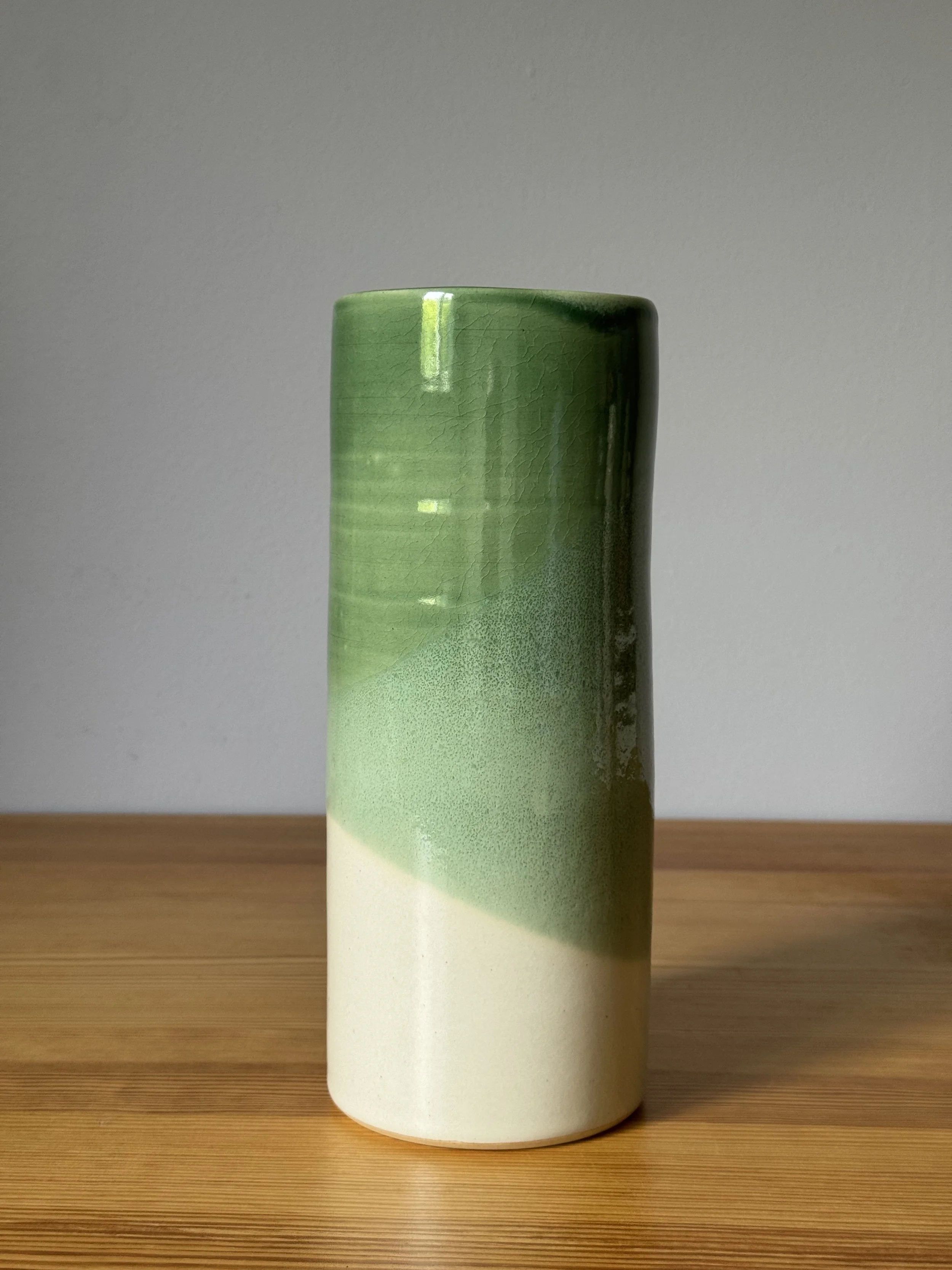 Handmade vase, made with white clay and blue glaze, reminiscent of cloudy, stormy skies. The perfect size for a bouquet of flowers!